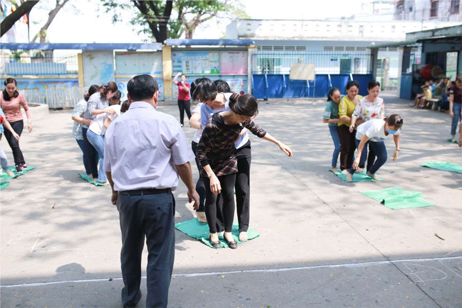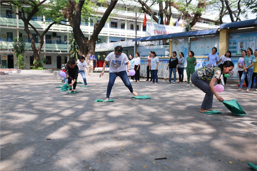 Công đoàn viên trẻ nhảy theo điệu nhạc.